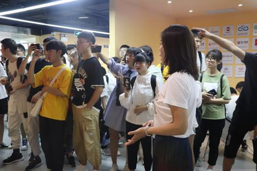 阿里巴巴创新中心郭成语老师带领学生参观阿里巴巴创新中心,讲解阿里巴巴创新中心的发展历程,并对目前的企业情况进行详细的介绍。