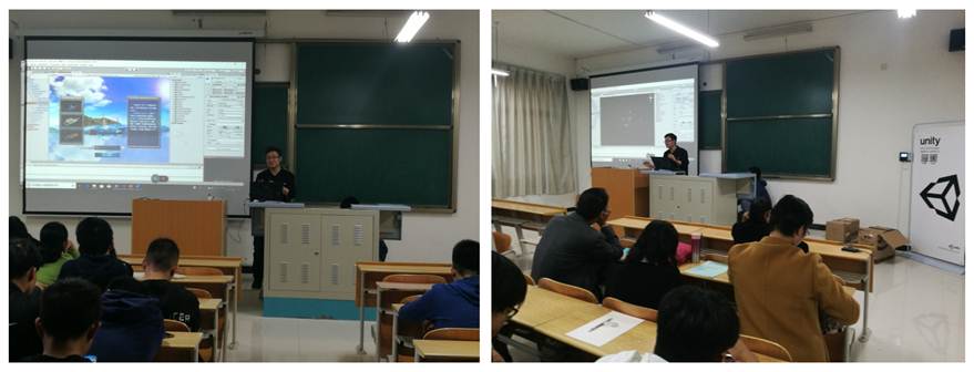 本次课改沙龙活动还邀请了Unity进校园活动企业导师,对unity3D引擎的光渲染优化,UI界面设计等技术内容进行了具体教学操作展示与分享交流。