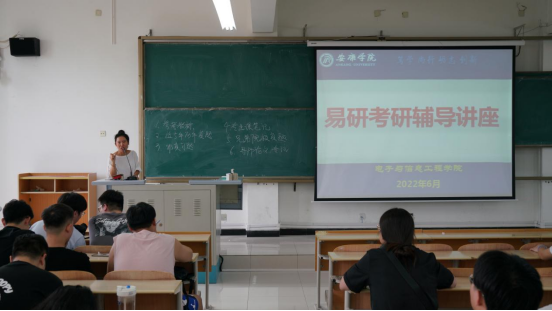 为进一步推进电信学院学生对考研深入了解,科学高效备考,6月1日下午beat365正版唯一官网必一在1304教室召开了“易研考研辅导讲座”,此次讲座由易研教育胡老师主讲,2019级考研学生参加。