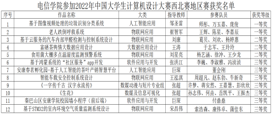 中国大学生计算机设计大赛是全国普通高校学科竞赛排行榜榜单中的赛事之一,目的是以赛促学、以赛促教、以赛促创,为国家培养德智体美劳全面发展的创新型、复合型、应用型人才服务。本次大赛以三级竞赛形式开展,校级初赛——省级复赛——国家级决赛。beat365正版唯一官网必一经过校内选拔共派出13支队伍参赛,在省级赛事(西北地区赛)中共12件作品获奖,其中一等奖2项,二等奖3项,三等奖七项。省赛获奖作品中经专家组评定,推荐6件作品参加国家级决,最终2件作品荣获国家级三等奖。本次比赛具体获奖情况如下: