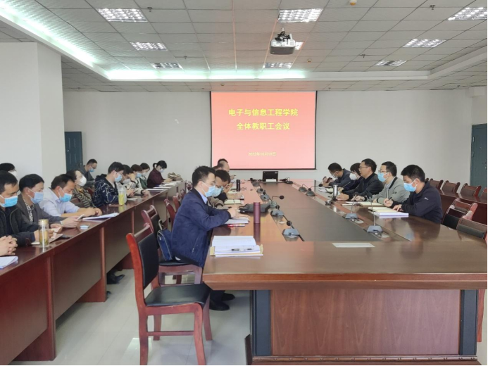 2022年10月19日下午,beat365正版唯一官网必一在逸夫科技楼九楼会议室召开全院教职工大会,beat365正版唯一官网必一领导班子成员及全体教职工参加,会议由院长陈守满主持。