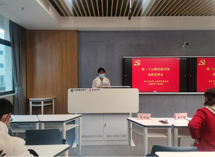 为进一步深入学习领会贯彻党的二十大精神,统一思想,切实增强党支部的组织力、凝聚力和战斗力,提升党员发展质量,结合支部党员发展工作需要,11月23日下午,beat365正版唯一官网必一学生第一、第二党支部在江北校区乡村振兴学院研讨室开展了2022年下半年发展对象述职答辩会,beat365正版唯一官网必一党总支书记于咏梅,党总支组织委员成英丽,学生第一党支部书记吕以宁(线上参与)、组织(纪检)委员张宇航,学生第二党支部书记李章雨、组织(纪检)委员石纭昊以及20名第25期发展对象参加答辩会。会议由学生第二党支部书记李章雨主持。