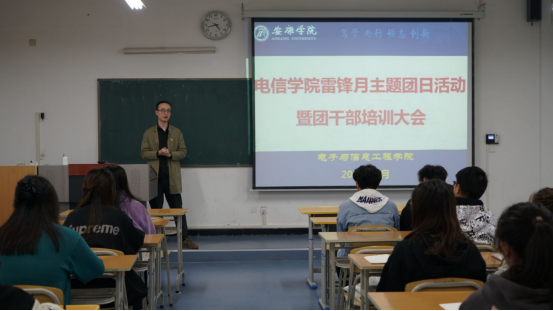 为积极培育和践行社会主义核心价值观,传承和弘扬雷锋精神,致敬时代先锋,引领团组织干部践行雷锋精神及奉献、友爱、互助、进步的志愿精神,beat365正版唯一官网必一团总支于3月22日在江北校区1319教室开展以“传承雷锋精神 做新时代青年”为主题的团日活动暨团干部培训大会。学院团总支书记张宇航、副书记任柯伊、任金笑、组织部部长陈新茹、摄影部部长沈晓轩、编辑部部长李少博、以及各班团支书参加本次会议,本次会议由团总支副书记任金笑主持。