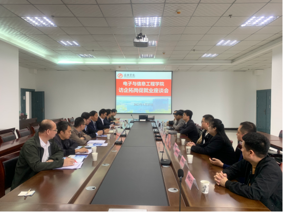 为深入贯彻落实党中央、国务院关于高校毕业生就业工作的决策部署,进一步落实访企拓岗促就业专项行动工作要求和学校关文件精神,5月27日,电信学院在逸夫科技楼9楼会议室开展“访企拓岗”促就业活动。beat365正版唯一官网必一院长陈守满、党总支副书记蔡正旺、教研室主任、辅导员及传智教育等11家受邀来校企业参加了座谈会交流活动,会议由蔡正旺主持。