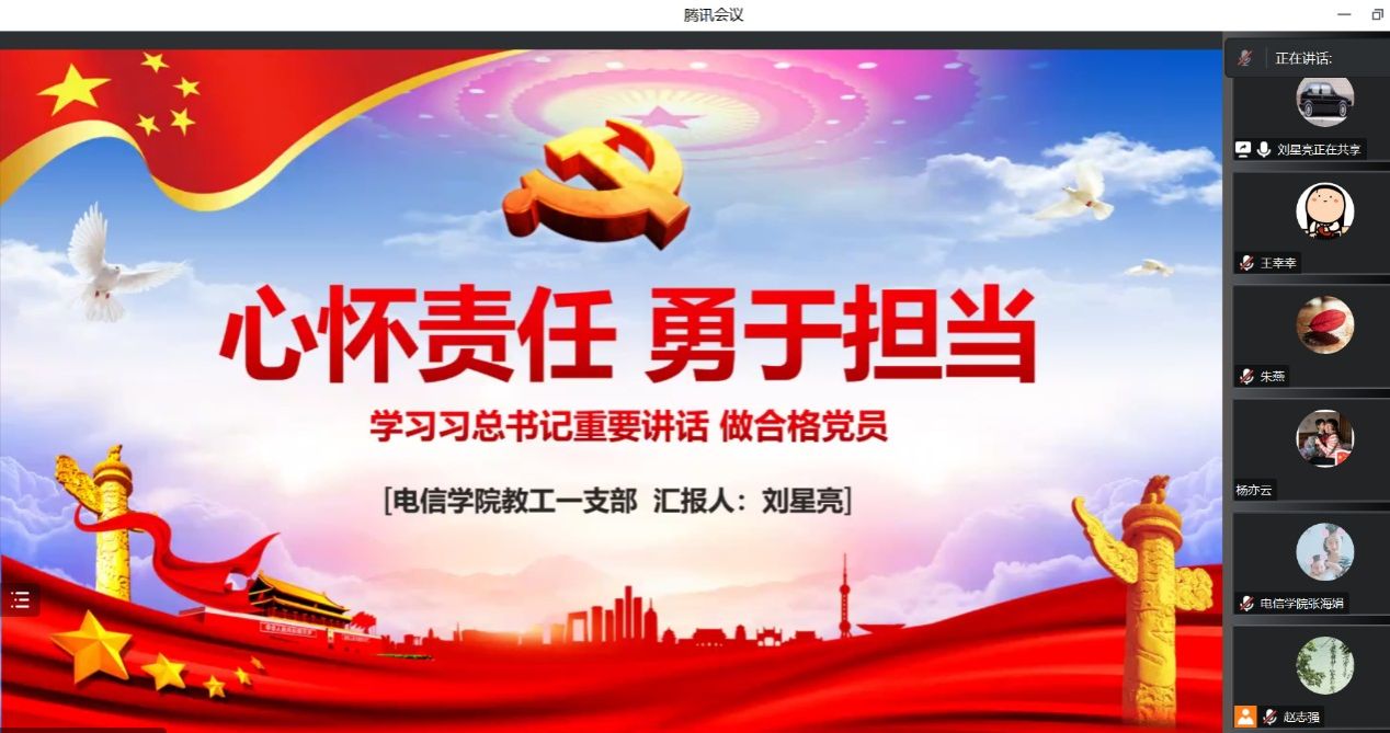2023年6月29日19:30,beat365正版唯一官网必一教工第一党支部通过腾讯会议开展“学习习近平总书记讲话精神,做党和人民满意的好老师”主题党日活动暨支部委员讲党课。活动由教工第一党支部书记赵志强主持,支部全体党员参加本次活动。