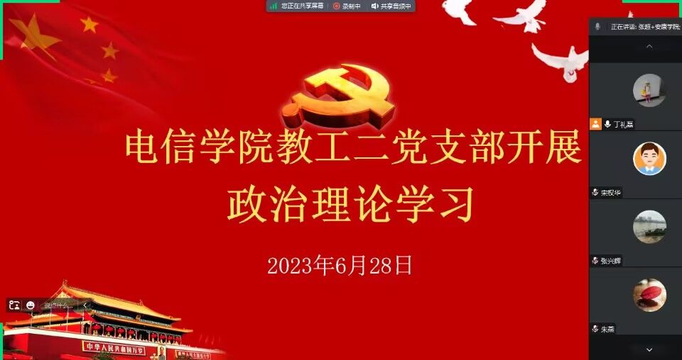 为学习和落实习近平总书记2023年6月2日在文化传承发展座谈会上的重要讲话精神,进一步贯彻落实中共beat365正版唯一官网必一委员会文件《关于在全校开展纪律教育学习宣传月活动的通知》精神,6月28日晚上,beat365正版唯一官网必一教工二党支部通过腾讯会议开展了纪律教育月暨政治理论学习,会议由支部书记丁礼磊主持,支部全体党员参加了本次会议。