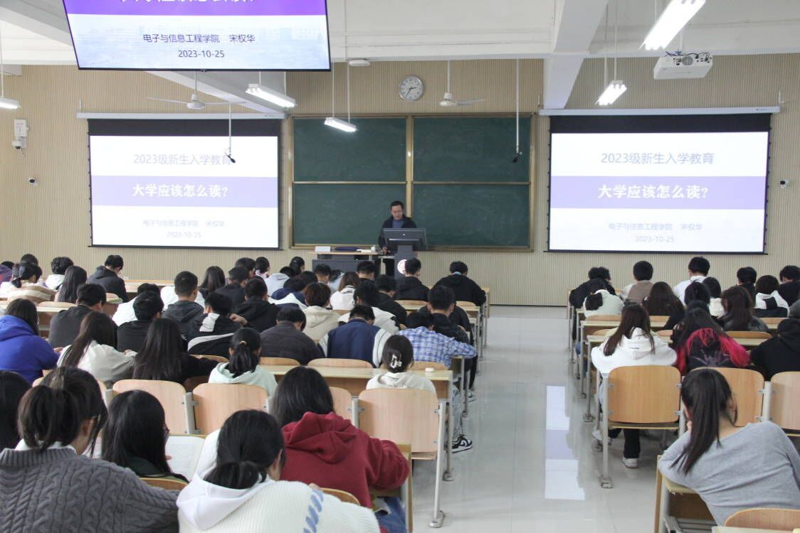 为帮助beat365正版唯一官网必一2023级新生更好的适应大学新生活,加强专业认知,培养良好的学习习惯,实现由中学到大学的转变。10月25日下午,beat365正版唯一官网必一副院长宋权华在江北校区1204教室讲授主题为“大学应该怎么读?”新生教育大会,beat365正版唯一官网必一2023级全体新生参加。