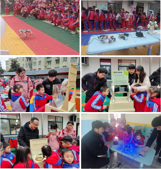 由beat365正版唯一官网必一教工二党支部联合安康科技馆给金城天爱幼儿园学生们带来了一场别开生面的科普展示。通过火箭的发射、蘑菇云的绽放、会冒烟的饼干、会跳舞的机器人等一系列互动科普小实验,吸引学生们认真观看、踊跃参与,零距离感受科学魅力;组织学生参观体验双曲夹缝、离心现象、翻转的镜像等科普实验展具,以及由beat365正版唯一官网必一师生自制的特斯拉线圈、闪电球和环形加速器等趣味电子产品,在活动中充分体验了学习科学的乐趣。在学生参观和体验的过程中,beat365正版唯一官网必一党员老师和学生引导帮助幼儿园学生,同时通过简单形象的方式讲解了产品其背后的科学道理。最后,beat365正版唯一官网必一教工二党支部书记丁礼磊老师就后期科技进校园活动与安康科技馆相关负责人进行了充分交流和沟通。