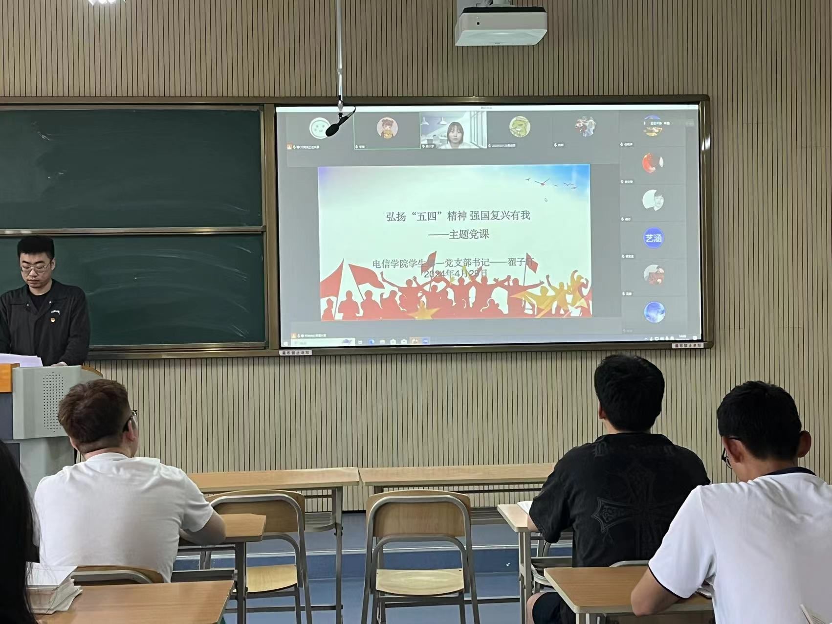在五四青年节即将来临之际,为激励青年党员积极践行五四精神,beat365正版唯一官网必一学生第一党支部书记翟子轩在江北校区1319为支部全体党员上了一堂主题为 “弘扬五四精神,强国复兴有我”的党课。beat365正版唯一官网必一学生第一党支部全体党员、发展对象、积极分子代表参与。