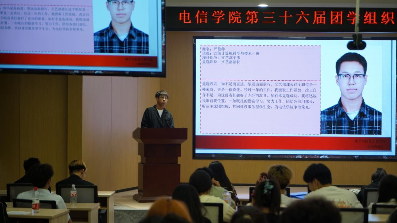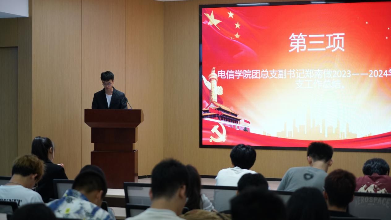 会议最后,张宇航做总结讲话。他对上一学年团学组织的工作成果给予了高度评价。他指出,团学组织是学生发展的重要平台,参与学生工作对学生发展大有益处,本次换届大会的成功举办,是一段责任的结束,更是新使命的开始。他希望在新的一学年中,新一届负责人能满载对工作的热情,信心百倍,勇往直前,开拓创新,用汗水和智慧谱写新的篇章!以踔厉奋发和勇毅前行的态度,创造电子与信息工程学院新的辉煌!。