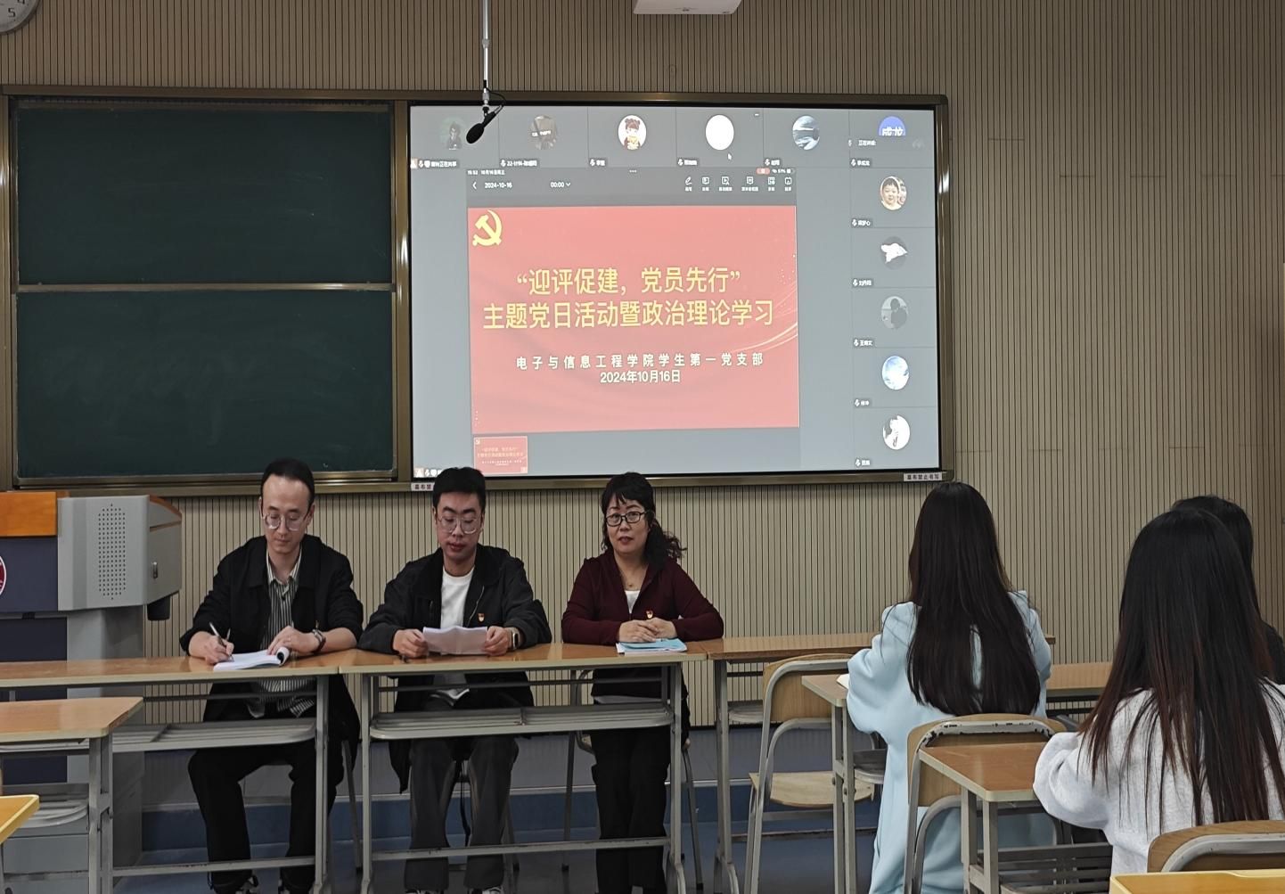 为提高学生党员对本科教育教学审核评估工作重要性的认识,充分发挥学生党员的先锋模范作用,以优异成绩迎接审核评估。2024年10月16日,beat365正版唯一官网必一学生第一党支部在一号教学楼1319教室通过线上线下相结合的形式,开展了“迎评促建,党员先行”主题党日活动暨政治理论学习,会议由学生第一党支部书记翟子轩主持,学生第一党支部全体党员、入党积极分子、发展对象参与。