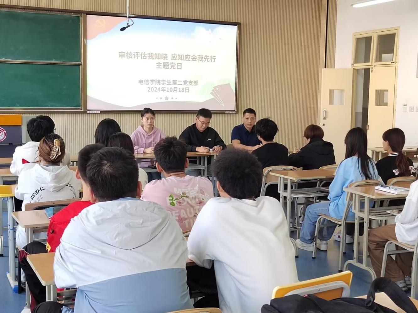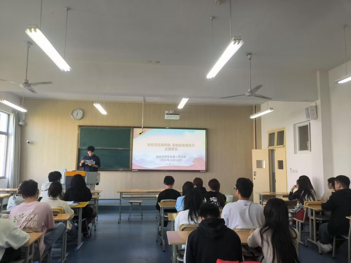 为积极开展迎评促建工作,全员全环节全力推进审核评估,落实立德树人根本任务,营造全院上下“人人关心评估、人人了解评估、人人参与评估”的浓厚氛围。2024年10月18日,beat365正版唯一官网必一学生第二党支部在一号教学楼1320教室开展了“审核评估我知晓,应知应会我先行”主题党日活动暨政治理论学习。会议由学生第二党支部书记贾金兵主持,学生第二党支部全体党员、入党积极分子、发展对象参与。