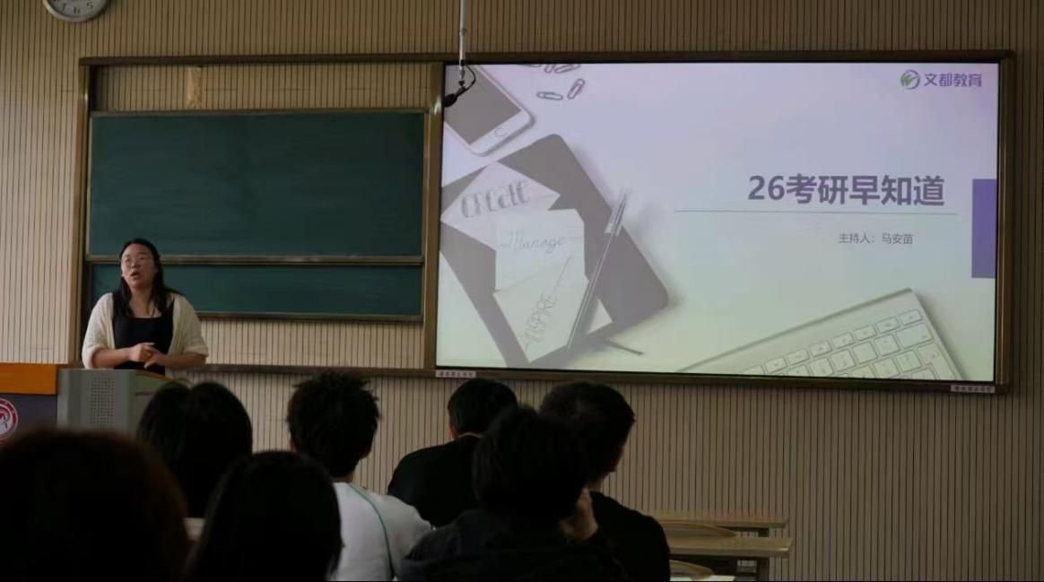 为帮助学生了解考研最新形势、明确考研复习方向,做好考研规划,切实提升学院的备考效率和“上岸率”,10月16日14:30,beat365正版唯一官网必一在江北校区1320教室举行了题为“2026考研早知道”的考研专题讲座。本次讲座由文都教育的刘丹老师主讲,2022级拟考研学生参加。