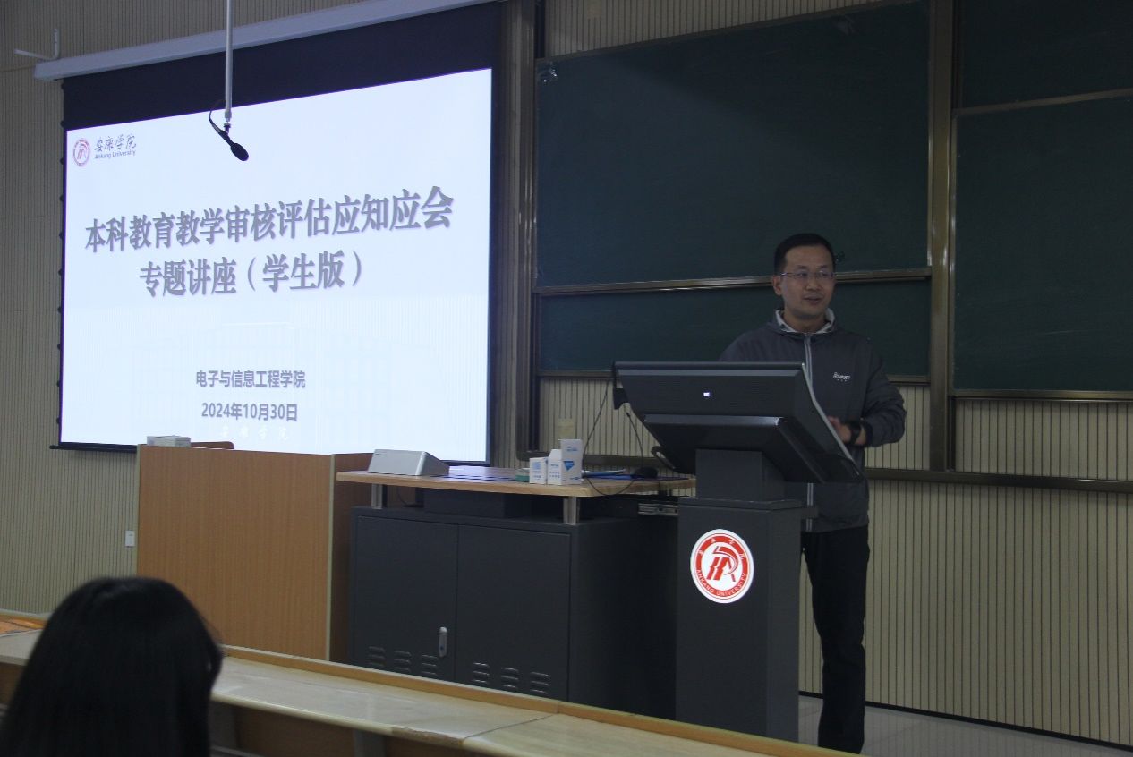 为全面落实本科教育教学审核评估工作要求,营造浓厚的迎评促建氛围,进一步强化主人翁意识和责任担当。2024年10月30日,beat365正版唯一官网必一副院长宋权华做了《beat365正版唯一官网必一本科教育教学审核评估应知应会手册(学生版)》宣讲暨beat365正版唯一官网必一2024级新生入学教育,beat365正版唯一官网必一2024级全体新生参与。