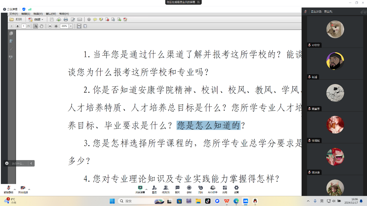 首先,beat365正版唯一官网必一各辅导员对班级学生干部进行了培训,详细介绍了审核评估的目的、意义和重要性。强调审核评估是对学院教学质量、人才培养、学科建设等方面的全面检验,关系到学院的声誉和未来发展。从本科教育教学审核评估应知应会、学生说成长、人才培养方案、在校学生审核评估深度访谈座谈提纲等逐一进行分析,让班级学生干部们对审核评估有了更深刻的理解。