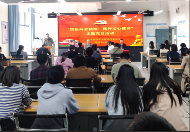 为深入贯彻落实全国两会精神,提升全体党员的政治素养和使命感,同时为扎实推进“五联五做”工作的开展,加强教工党支部与学生党支部的联系,3月26日下午,beat365正版唯一官网必一教工党支部和学生党支部在逸夫科技楼B602开展“领悟两会精神,践行初心使命”主题党日活动,本次活动由丁礼磊同志主持。