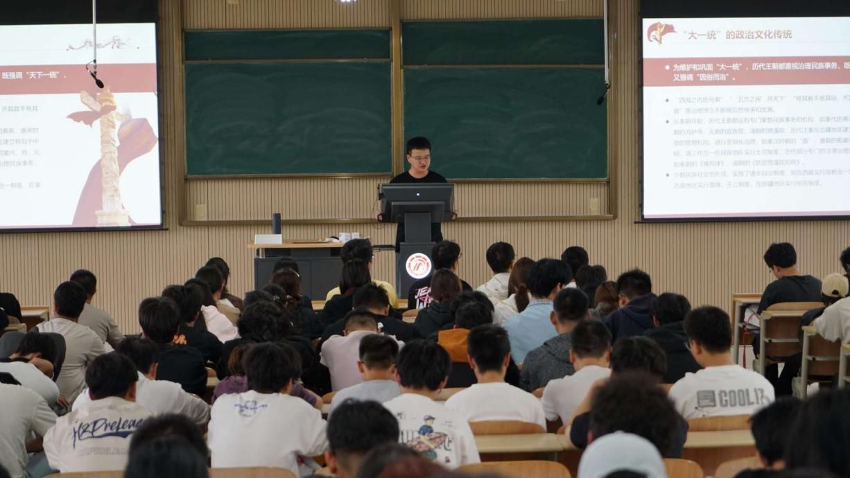 为引导新生树立正确的中华民族历史观,铸牢中华民族共同体意识,2025年10月11日下午,辅导员贾金兵在江北校区1404教室讲授主题为“中华民族共同体意识的形成与铸牢”的入学教育。beat365正版唯一官网必一2025级全体新生参加此次学习。