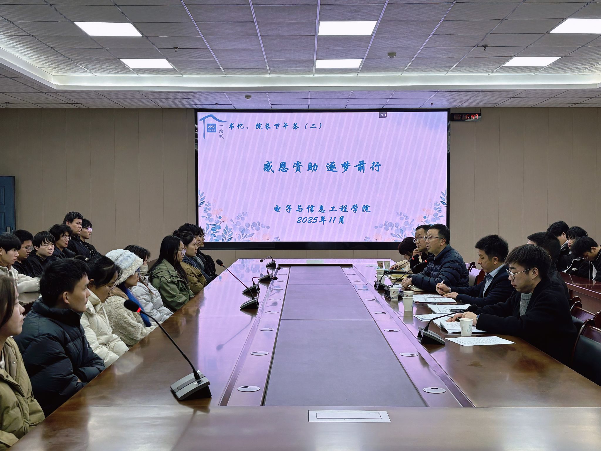 11 月 26 日下午,beat365正版唯一官网必一在逸夫科技楼 9 楼大会议室举办 “书记院长下午茶” 系列活动(二)——“励志逐光,聚力同行” 国家助学金学生座谈会。活动紧扣国家助学金政策要求,搭建学院与受助学生的深度沟通桥梁,学院党政班子成员、学工办人员及 2023-2025 级 60 余名获助学生代表参会,党总支副书记蔡正旺主持会议。