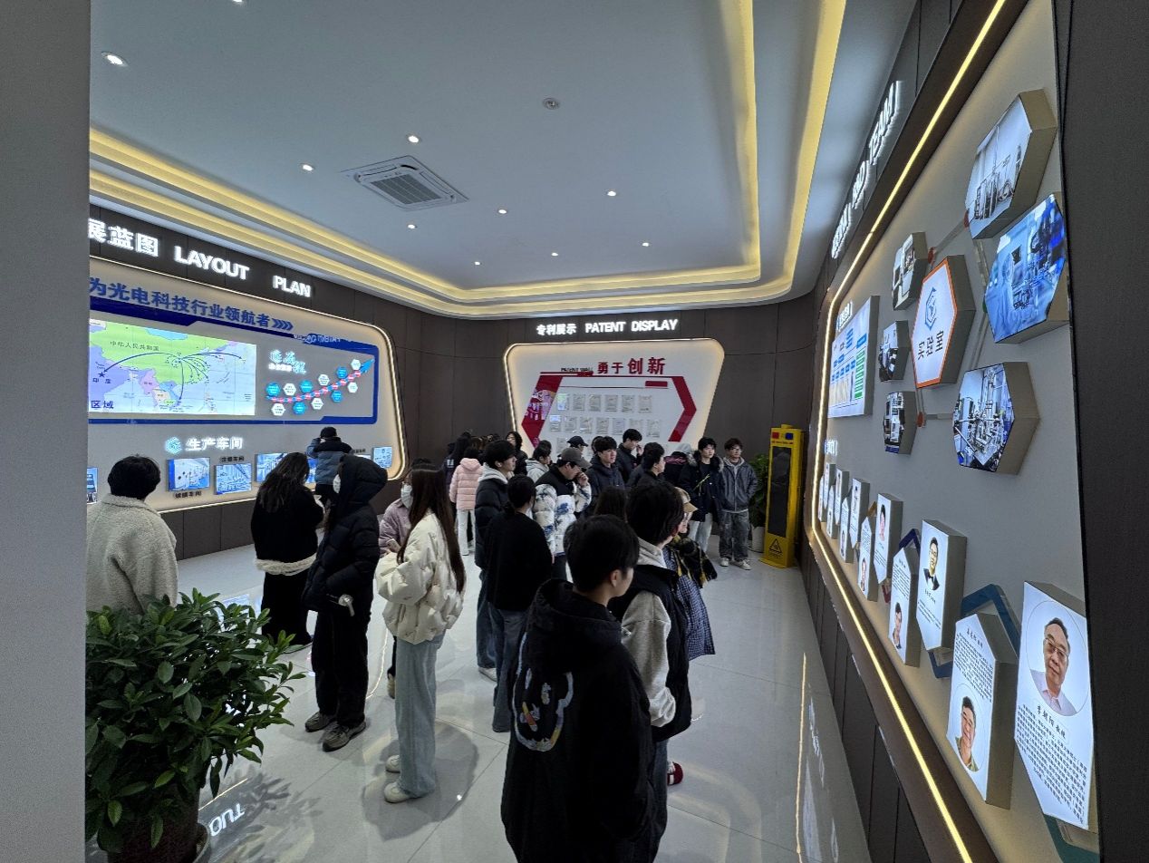 园区参访首站走进高新区规划展馆。通过图文展示、实景模型等多元形式,学子们全面了解高新区的产业布局、发展规划及人才需求导向。随后,大家先后深入禾瑞光科技、轩意光电两家重点企业,走进生产车间与工作现场,近距离观察企业生产流程、技术应用及岗位设置,与企业工作人员面对面交流职业发展前景,直观感受企业文化与工作氛围。