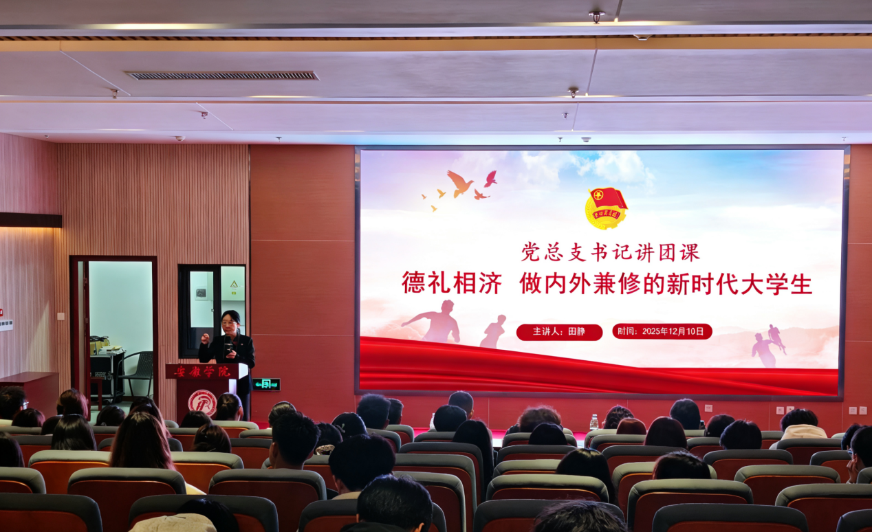 为加强学院团学组织干部思想道德修养,提升干部综合素养,助力新时代大学生成长成才,12月12日,beat365正版唯一官网必一党总支书记田静以“德礼相济 做内外兼修的新时代大学生”为主题,为全院团学组织干部带来了一堂内涵深刻、意义深远的专题团课。学院团总支、学生会、社团服务中心全体学生干部参与学习。