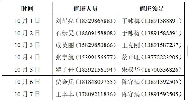 根据学校安排,beat365正版唯一官网必一2024年国庆节假期值班安排及相关工作要求如下:
