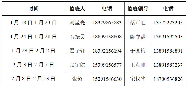 2.假期值班人员,电话24小时开机,如有工作需要,及时联系并协助处理。